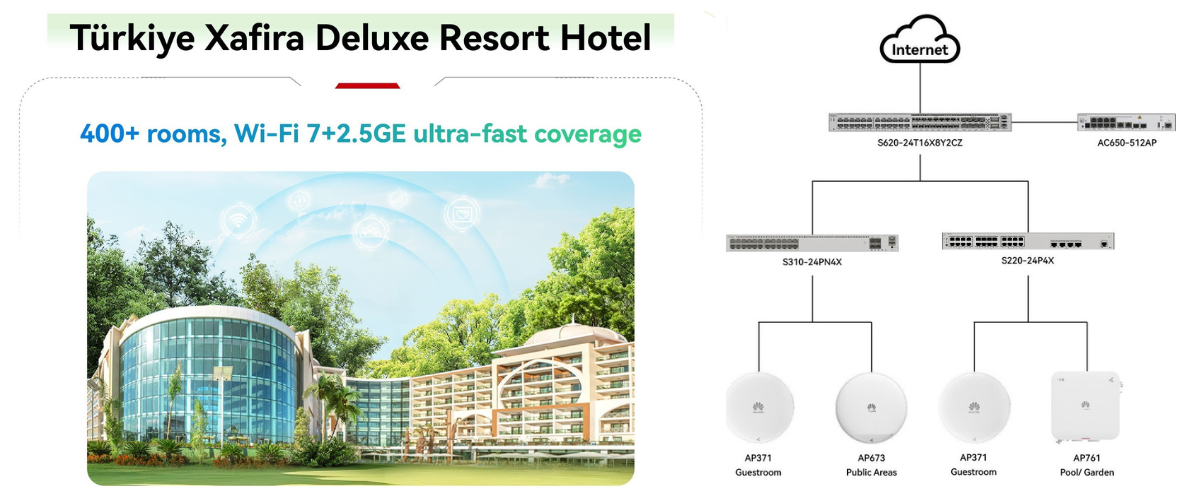 Комплексная сеть для отелей с Wi-Fi 7, умными точками доступа и централизованным управлением.